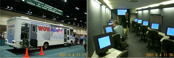 圖:2001年ASTD ICE的Mobile-Learning是一台40呎貨櫃裏面裝PC,現今想來不免好笑, 但創意、夢想與嘗試,一直都是創新的種子, 然後真正發揮貢獻與生產力, 才算成者為王! |