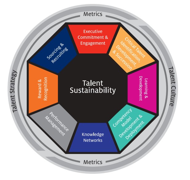 根據Center for creative leadership所提出的架構,人才管理系統多關注在下列八個系統與流程中,而這八個系統流程的發展則是根基於組織的人才策略與文化: