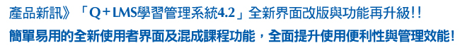 深耕於數位學習與人才發展專業領域近十年的育碁,針對台灣廣大的中小企業們,亦持續創新『Q+LMS學習管理系統』的功能,友善的界面(UI)、全面支援IE8、新版產品報表功能也再提升,更快的報表反應時間、便利的報表「訂閱」,除了讓行政作業成本大幅降低外,更能協助於中小企業的人才培訓發展,將Small Business創造Smart Business!