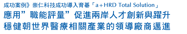 國內企業數位學習/人才發展領導廠商育碁數位科技宣布,全球呼吸治療領域知名公司「崇仁科技」配合營運計劃縝密規劃相關人力資源發展計劃,於台灣及大陸廈門廠,分階段導入育碁「a+HRD Total Solution」,提供員工一個多元的數位學習與人才發展平台,藉由職能評量e化系統,完整快速、客觀有效率地分析人力的優劣勢,協助員工展開個人學習發展計畫,同時應用「a+LMS學習管理系統」,提供完整的學習資源,經由系統化、組織化、效率化地學習與訓練,擴大學習動機與成效,穩健朝全球呼吸治療照護的領導廠商邁進。