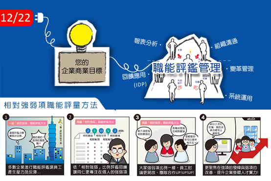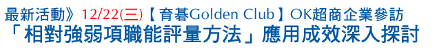 另外,在職能評量的應用主題上,除了陸續透過文章及漫畫案例分享外,亦於12/22(三)育碁客戶專屬的【育碁Golden Club】再次邀請到OK超商,深入淺出分享其如何運用育碁獨創的「相對強弱項職能評量方法」,讓OK超商的職能專案可以順利推動,不僅受評主管們接受度有效提升,並進一步成功促進個人發展計畫的推動,期望協助各參與企業客戶能少掉一些摸索過程,獲得快速導入的捷徑,加速企業人才競爭力的發展。