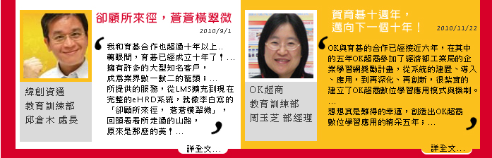 國內LMS/eHRD領導廠商育碁數位科技,今日宣布包括繁、簡、英語系的最新產品版本「a+HRD Total Solution 5.1」正式上市。長期以來育碁對暨有客戶提供小版本系統免費授權升級的服務,此次也將提供99年9月份以後採用a+ LMS 5.0及a+HRD全系列5.0版產品的客戶提供免費升級服務。值此育碁十周年之際,透過持續性的eHRD產品研發投資,育碁要以行動來證明與落實 ”育碁十年有成!客戶的選擇,我們的承諾,盡在育碁 a+HRD Total Solution “。