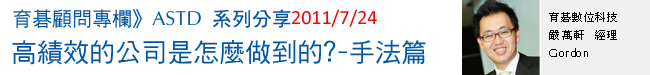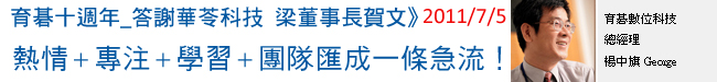 自去年7月起,育碁十週年慶的系列活動,在8/24歡慶11週年舉辦【ASTD HRD人才發展趨勢高峰論壇】研討會時將告一段落,並邁向育碁的第12年,這段期間收到很多的大禮與賀詞,心中充滿感謝,並對接下來第二個持續專注於eHRD領域的十年,有一個不同格局的使命與願景,與您共創企業人才競爭力。