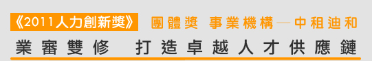 藉由人才的培訓,可以不斷複製競爭優勢的中租迪和,十分重視人力發展,藉由培訓業務行銷能力與審查風險控管能力,持續提升員工生產力,創造出 更優異的績效表現,進一步實現成為亞太地區卓越的財務金融公司願景。而中租迪和卓越的人才培訓與創新作為,也使其於2011年獲得行政院勞工委員會頒發 「第七屆國家人力創新獎」團體獎。... (完整案例報導)