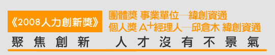 ■來源:行政院勞工委員會職業訓練局 第七屆人力創新獎案例專刊「創新人才 精彩100」 儘管大環境年年變化,全球經濟情勢起伏動盪,但緯創資通訓練暨發展中心處長邱倉木認為,局勢愈不明朗,人才愈重要,尤其要利用時機做人才盤點,檢討人力配置,以便步履穩健地表現出最佳實力,擁有好人才便沒有不景氣。
