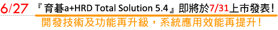 “ 身處科技產業,不投資產品研發,是沒有未來的;能夠視企業運作需求、技術演進與應用趨勢發展,提供持續性的產品功能演進與整合,才是系統解決方案專業廠商對企業客戶真正的承諾!“ 這是育碁楊中旗總經理代表育碁產品開發團隊對華人企業用戶清楚的承諾;也同時藉此展現身為國內eHRD領導者的自信與競爭力。 深耕於LMS/eHRD產品系統專業領域的育碁,連續12年持續大量投資於人才發展領域專業與技術開發人力,展現穩健產品研發與版本更新的充沛動能,繼2012/2/29發表a+HRD Total Solution 5.3後,即將於7/31進一步發表a+HRD Total Solution 5.4最新版產品。 ■即將於2012/7/31發表a+HRD Total Solution 5.4最新版產品新增功能如下: 1.應用最新的JQuery等程式開發技術,並於MPS模組上採用HTML 5標準,領先業界提供系統使用者端功能於未來能真正支援不同系統環境與裝置設備的擴充支援彈性 2. 將管理者功能與使用者功能的系統設計切割,支援分開(或維持合併)的Application Server彈性佈署與延展架構;同時兼顧超大用量企業客戶的擴充需求,以及可分開佈署管理者系統權限於Intranet以增進資料安全的管控限制,以支持一般使用者於Internet Access的便利性應用。.... (完整資訊)