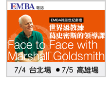 全球備受推崇的領導力教練,EMBA雜誌最受歡的專欄作者,葛史密斯(Marshall Goldsmith)來了! Thinkers50/HBR:2011年全球最有影響力的思想家「領導類」第一名、經濟學人雜誌:全球最值得信賴的五位主管顧問之一、華爾街日報:10大企管教育家之一、美國商業週刊:領導力發展史上最具影響力的顧問之一、所教練的對象包括財星五百大企業CEO:福特汽車執行長、葛蘭素大藥廠領導人、戴爾電腦創辦人等。 他的智慧洞見影響全球無數企業領導人,也溫暖啟發了無數工作者的心靈。 現在,今年七月,您可以親身參與這場世界級的知識饗宴。 │活動時間│7/4台北 福華文教會館,7/5 高雄 蓮潭國際會館 │活動優惠│5/31以前,票價享早鳥優惠、報名皆加贈EMBA雜誌6期 │研討會資訊│http://www.emba.com.tw/2012/goldsmith/index.html │報名方式│於活動網頁下載報名表,傳真02-2766-6864;或洽02-2768-0105 │主辦單位│EMBA雜誌