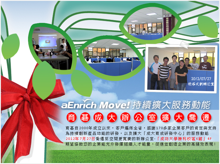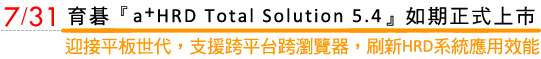 育碁產品發展部資深經理許瑞鴻表示,創新一代育碁「a+HRD Total Solution 5.4」,繼5.3新增”證照預警”、”個資保護”及”a+MPS行動績效系統”…等功能後,再次應用最新的JQuery、HTML 5等程式開發技術,領先業界提供系統使用者端跨Browser的支援(優先支援safari- IPad),且率先支援SQL Server 2012,加速資料處理,提升企業客戶系統應用的效能;同時持續優化及加強各產品功能,讓客戶可以更便利、更彈性的運用系統,協助企業有效發揮人員培訓與人才發展的e化投資效益,不僅展現了育碁在專業系統廠商的差異競爭力,與客戶共同創造人才發展的價值外,更是企業客戶在eHRD系統應用成效與投資的保障!