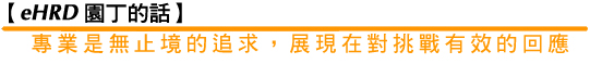 "售後服務速度與品質"常被汲汲營營於爭取新客戶訂單的供應商所忽略,育碁認知一個可被期待與託付的領導廠商,不僅要在"客戶數"與"市場佔有率"上領先,更要能在"問題解決與服務品質"上,創造不同層次的領先,來引領同業共同為HRD導入的效益與服務品質努力!才能真正創造整合科技的應用效益,以促進企業人才發展績效,同時發揮產業的關鍵價值!....