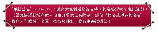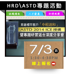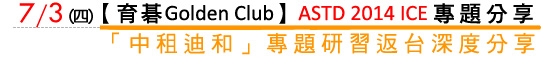 「中租迪和」吳祉龍資深經理 本次前往美國領獎之餘,同時進一步在ASTD ICE 進行交流與學習,我們特別於 7/3 安排一場開放型育碁「Golden Club」“ASTD 2014 ICE專題分享會”,請他分享獲獎應用的內容,以及在ASTD 2014 ICE深入交流與學習的精華重點。非常感謝大家對此專業活動的支持,報名盛況空前,才開放一周即超過原定名額,內部已緊急協調,然因場地空間與設備仍有限制,且優先提供育碁暨有客戶,未能開放目前所有報名貴賓,先在此表達謝意與歉意。