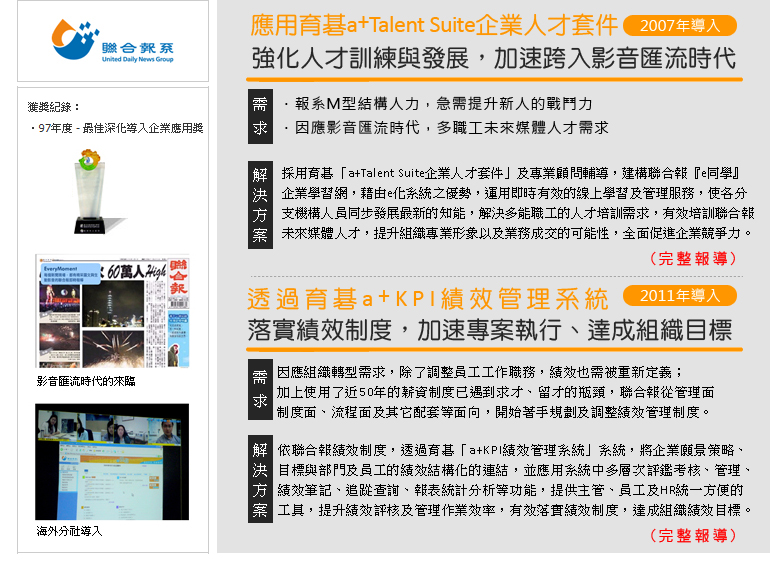 聯合報如何進行系統性的規劃與應用,並展開相關的職能培育計劃等實務應用關鍵要點 以協助組織建立一套獨特而完善的體制,成就組織及個人的成果,協助企業永續經營!