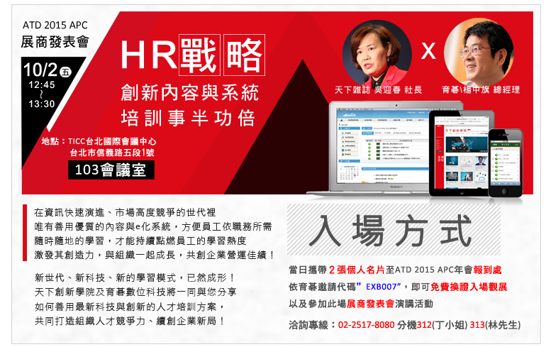 同時也將分享其今年在ATD 2015 ICE 所發表的最新版「世界級頂尖的業務職能模型」