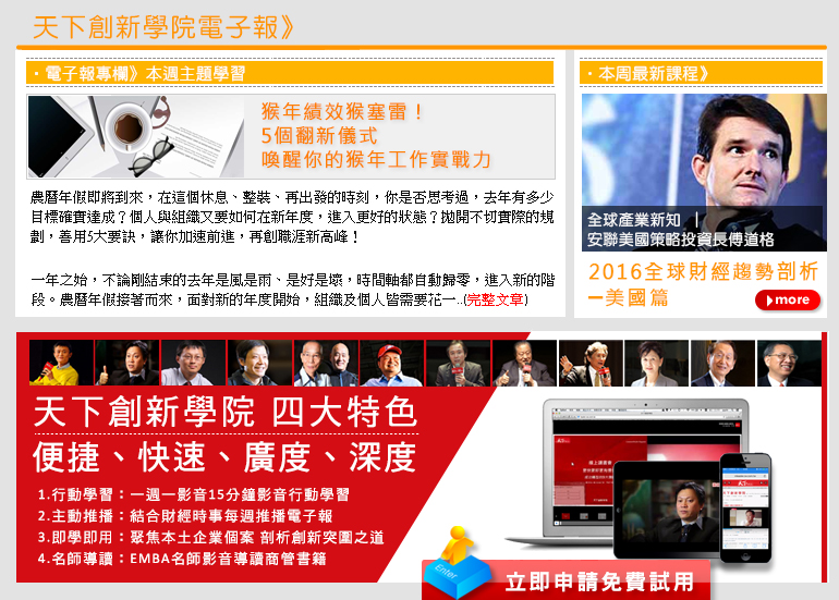 歡迎您的搶先加入,協助組織持續開創營運新績效!
