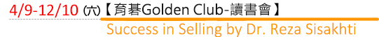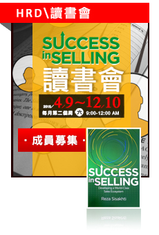 由Dr. Reza Sisakhti所著的Success in Selling一書,已由ATD Press於2015/12/7 正式出版銷售 ;為了將Dr. Reza Sisakhti的專業持續與國內人資專業工作者分享交流,育碁已採購10本到貨,並規劃從4/9起於每個月第二個周六的早上舉行8場讀書會活動。 眾所周知,業務銷售的成功程度,牽涉到企業的發展格局;且組織策略變革中,業務銷售的成功因應與否,牽涉到企業的成敗!一直以來,業務人才的發展與管理,是高度複雜與挑戰的人資任務,若可成功施行,將有助於人資策略性角色(Strategic Partner)的建立以及與組織目標連結邏輯的掌握,且能促進其它變革的執行!期待透過此讀書會與台灣的HR專業工作者持續研習,以期能善運此參考資源並落實於工作,共創個人與組織績效!