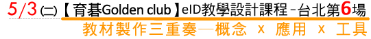│課程特色│ 1. 認識eID(Instructional design)數位教學設計概念 2.了解多種數位教材製作工具的特色 3.透過PPT結合製作工具,輕鬆產出高品質教材 │時間│2016/5/3() 9:30-17:00 PM (9:00 AM開放入場) │地點│台北恆逸電腦教室 - 台北市復興北路99號 │對象│規劃教育訓練課程、教學設計或教材設計之人員 │費用│NT$6,000 (育碁客戶享有優惠方案, 請洽您專屬服務窗口) │報名方式│ 線上報名