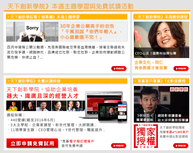 同時,不斷投資產品、且隨著e化趨勢與時俱進的育碁與天下創新學院也將一同發表最新版產品,期望協助客戶能有效結合科技的應用,加速人才培訓的成效。活動更特別邀請應用雙方整合方案的標竿客戶「慧榮科技」,分享其持續取得系統版本升級與內容升級的實務應用與成效,期望藉此活動共同即時掌握國際新知、認識最新e化科技與企業實務應用,以協助組織持續提升人才競爭力!