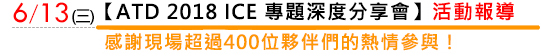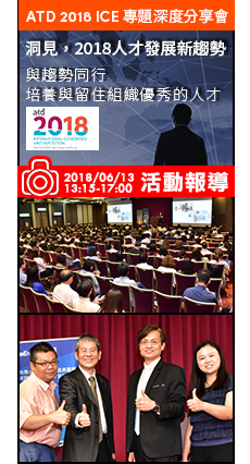 繼去年【ATD 2017 ICE返台專題深度分享會】後,育碁與天下創新學院及康士藤再度合作共同邀請今年赴美參與ATD年會的蘇文華博士、張淑萍資深專業顧問,以及勇奪本屆ATD 2018「人才發展創新大獎」的資策會教研所廖肇弘博士等三大講師,分別就年會中最新的人才發展應用趨勢、專業知識,以及ATD獲獎內容與經驗,共同與國內企業HR夥伴們分享。