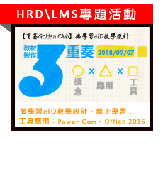 │時間│2018/9/7(五) 9:30-17:00 PM (9:00 AM開放入場) │地點│台北恆逸電腦教室 - 台北市復興北路99號 (一人一機) │對象│規劃教育訓練課程、教學設計或教材設計之人員 │報名方式│ 線上報名