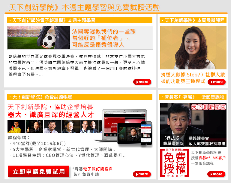 │時間│8/14(二)1:30 PM-5:00 PM │地點│集思台大會議中心\柏拉圖廳 (台北市羅斯福路4段85號B1) │對象│企業經營者、單位主管、教育訓練人員、人力資源相關人員 │費用│免費 │報名方式│ 線上報名