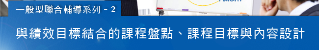 • 內容摘要: 以期待的績效目標,盤點現有課程列表及目標學習課程的關聯,做雙向的修正與調整,展開成為操作型的課程學習目標,並進一步切割成為單元學習目標,並就單元的學習大鋼與內容確認其恰當性。