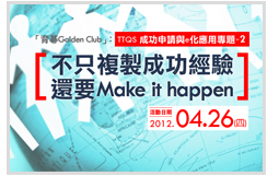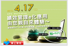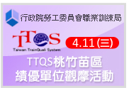 ‧2012/4/11(三) 職訓局 TTQS 桃竹苗區績優單位觀摩活動【線上報名】 ‧2012/4/17(二) 【KPI 實機操作Workshop】績效管理e化管理,由您親自來體驗! ‧2012/4/24(二) 【育碁產品Focus Group】KPI專題 _強迫分配與人員組織異動系統應用 ‧2012/4/26(四)【育碁Golden Club】TTQS 成功申請與e化應用專題_2