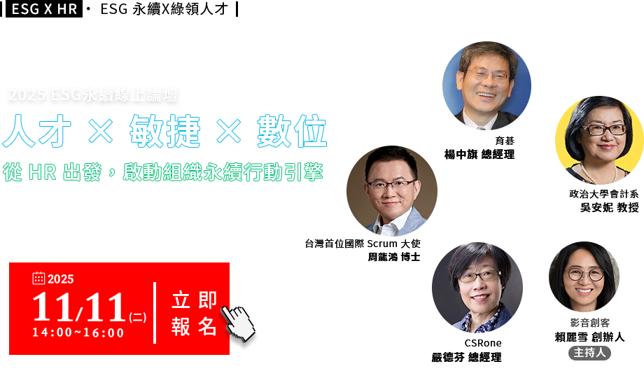 分享如何以 HR 為起點,推動 ESG 真實落地行動,打造組織永續競爭力。