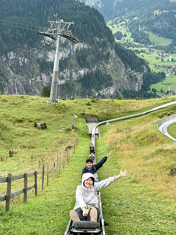 第1梯:「厄希嫩湖」 坐著雪橇溜滑梯,享受在山中快速滑行的感覺